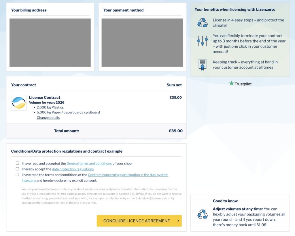 ※ 法律上、Lizenzeroが代理送信できないため