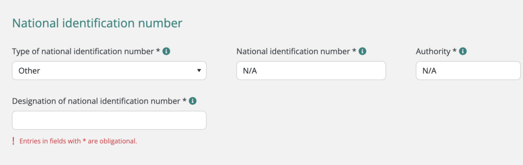 迷ったら:Not applicable / No registration number(選択肢が出る場合)